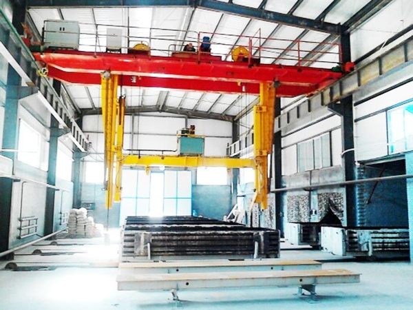 加氣混凝土起重機是專門用來吊運混凝土模具和坯體的專用起重機,由箱形橋架、大車運行機構(gòu)、起升機構(gòu)及電氣設備四部分組成,配合專用吊具,完成模具的翻轉(zhuǎn)、開模和脫模等工作。